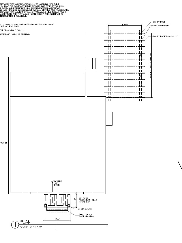 The beautiful blue stone pathway settled over time and was hidden by the overgrowth. The homeowners knew that the area needed some love, but they also knew that it had more potential. We met with our architect. Together, we came up with a plan to create a more stately entry. This new entry will offer shelter from the weather.