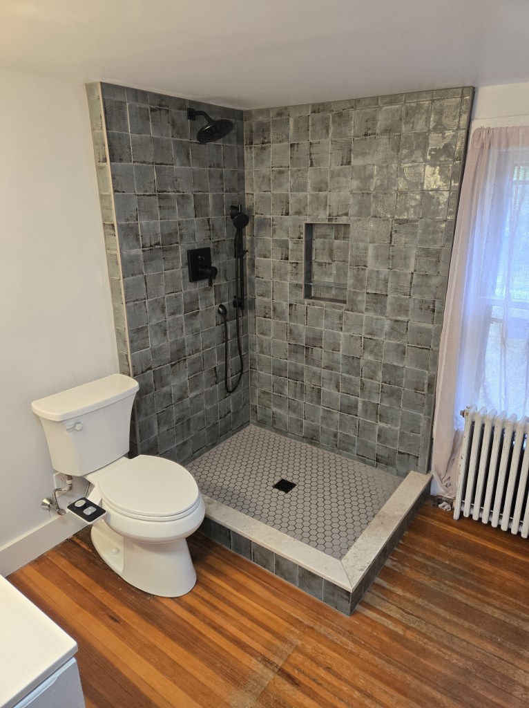 This project updated a small shower while maintaining the historic charm of this 1800s home in Poughkeepsie, New York. My clients are gradually incorporating modern functionality into the home. They are also ensuring the features that originally inspired their purchase remain intact.