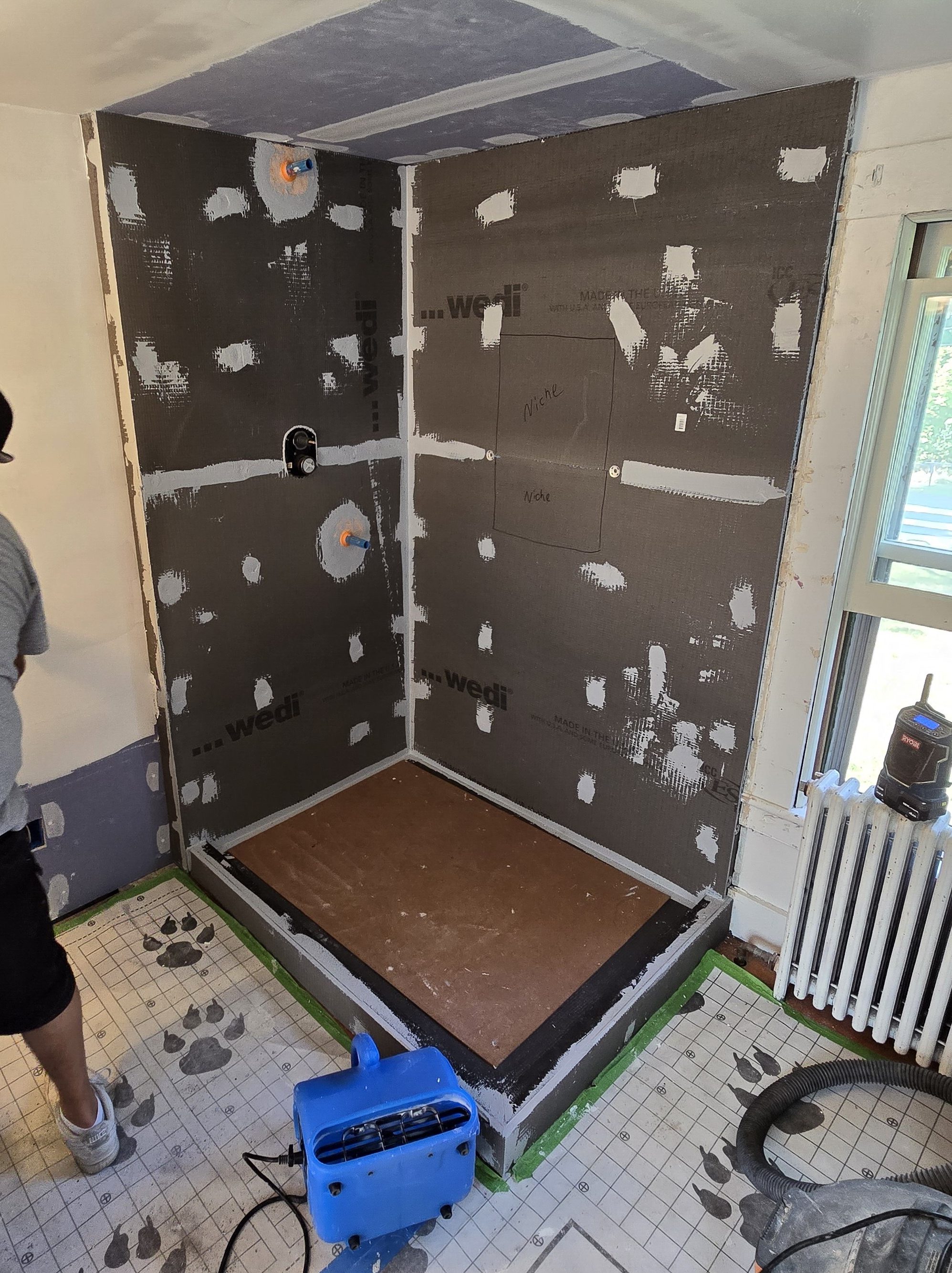 The products that are under the tile are as important as the tile work itself. Many people assume that tile and grout are water tight. This is not true as grout is porous and over time can allow water seepage.