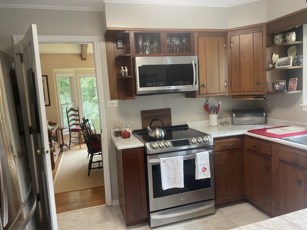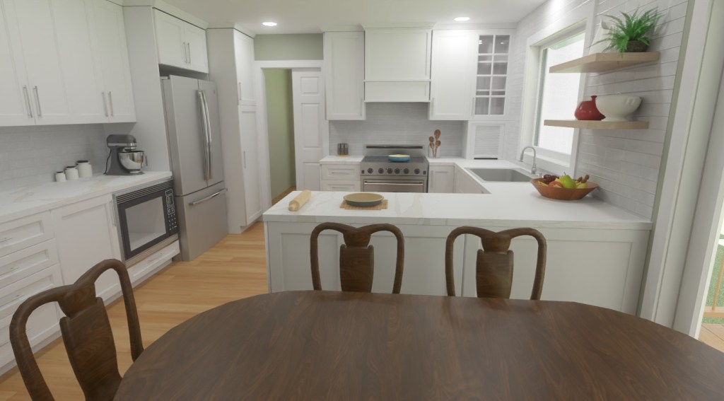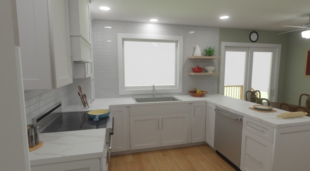 In initial conversations, we discussed some of the their hopes for the new design. One was for a larger picture window at the sink (they love watching the birds in the morning). Another was a solution for the door to the dining room.