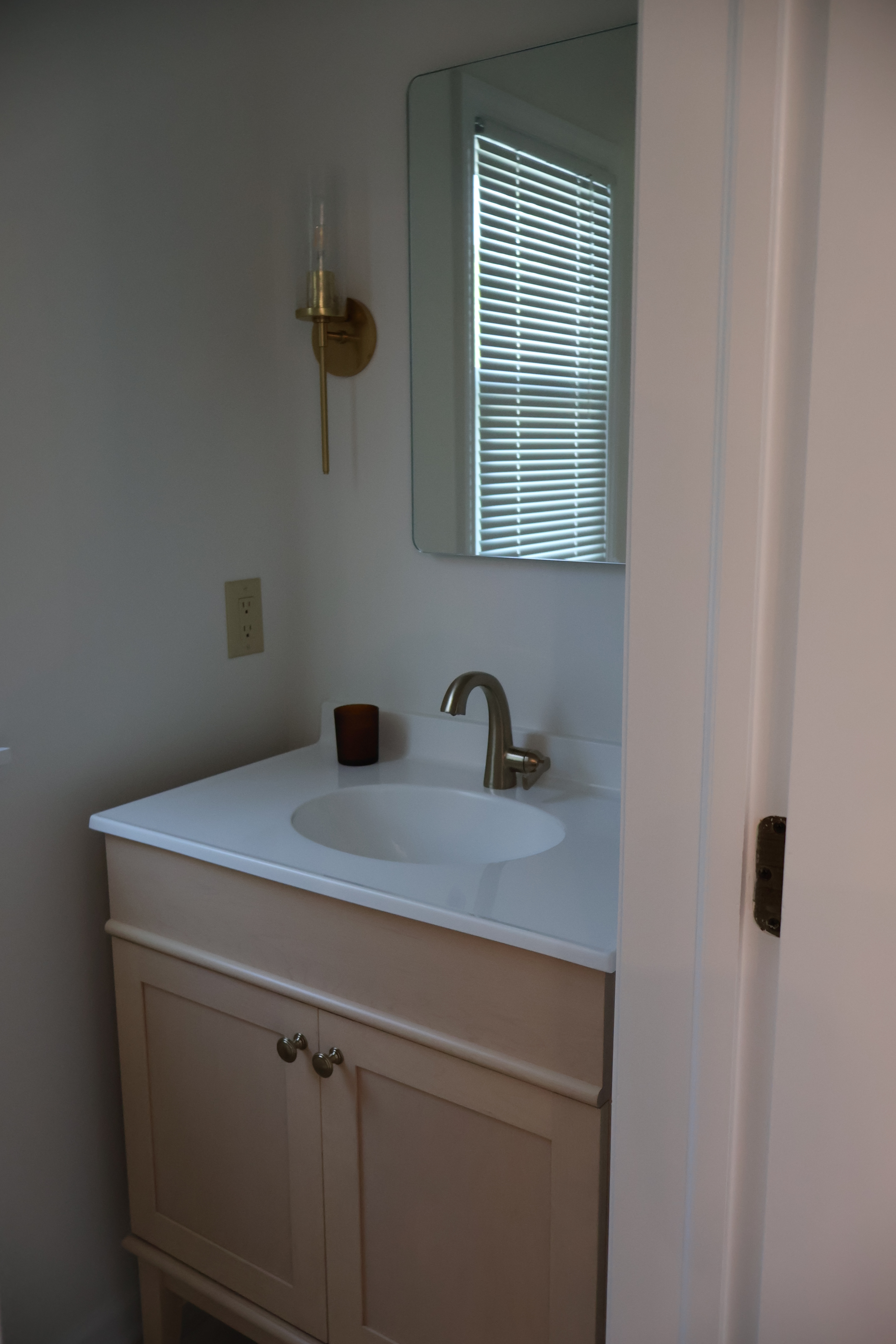 The half bathroom is a simple space with a toilet and vanity. We went back and forth on this space a few times due to budget. The initial design we discussed kept the vanity. It matches the cabinetry and countertop selection from the mudroom. The design also removed the baseboard in lieu of a kick-space heater. Budget can make or break a project. In the end, the Homeowners compromised to arrive at numbers that worked best for their family.